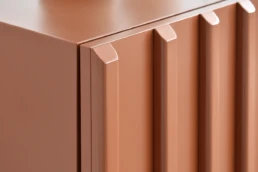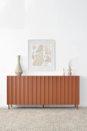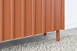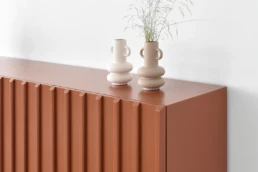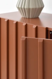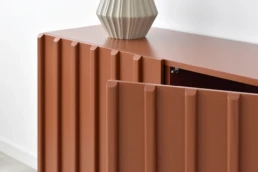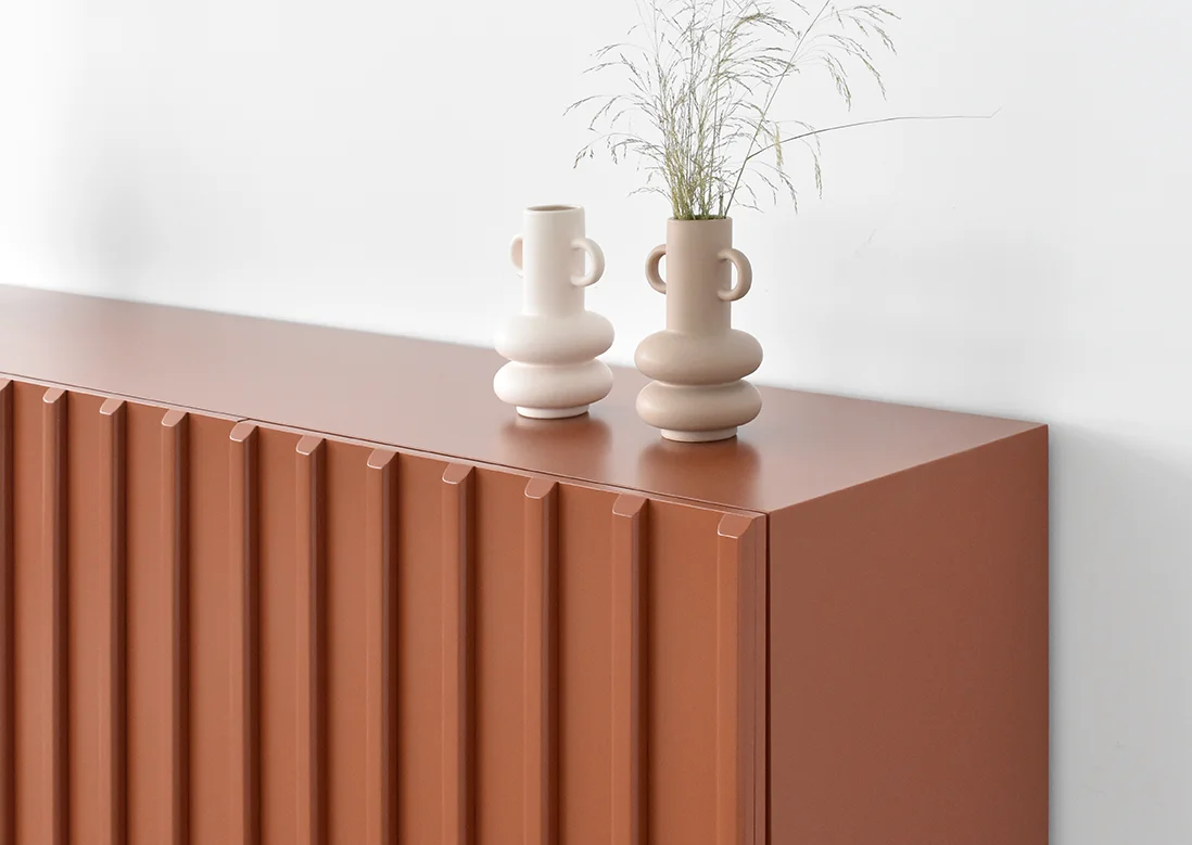 Straight lines and natural woods take centre stage in this collection to create a pleasing design with great visual strength. Clearly Nordic-inspired, it presents a play of vertical lines creating a classic aura with modern lines that bring warmth to home. Available in oak, walnut, lacquered finishes and with all our leg models. Option in porcelain top.