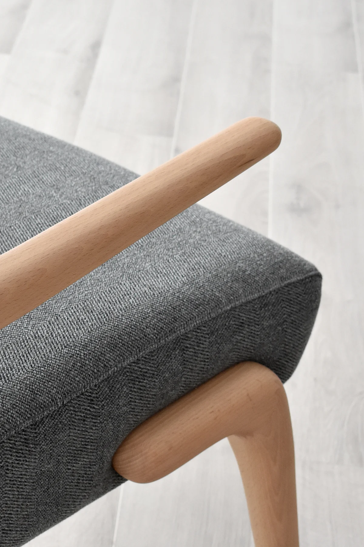 Ödense is an armchair that embodies the essence of Nordic design: clean, minimalist, and functional, yet without sacrificing elegance and warmth. Inspired by the natural beauty of Scandinavian landscapes, this chair is crafted from Beech wood, giving it exceptional robustness and durability. With organic shapes and refined lines, it creates a sense of harmony and balance in any space, while its exposed wood finishes add a touch of rusticity and naturalness, making it a unique piece.