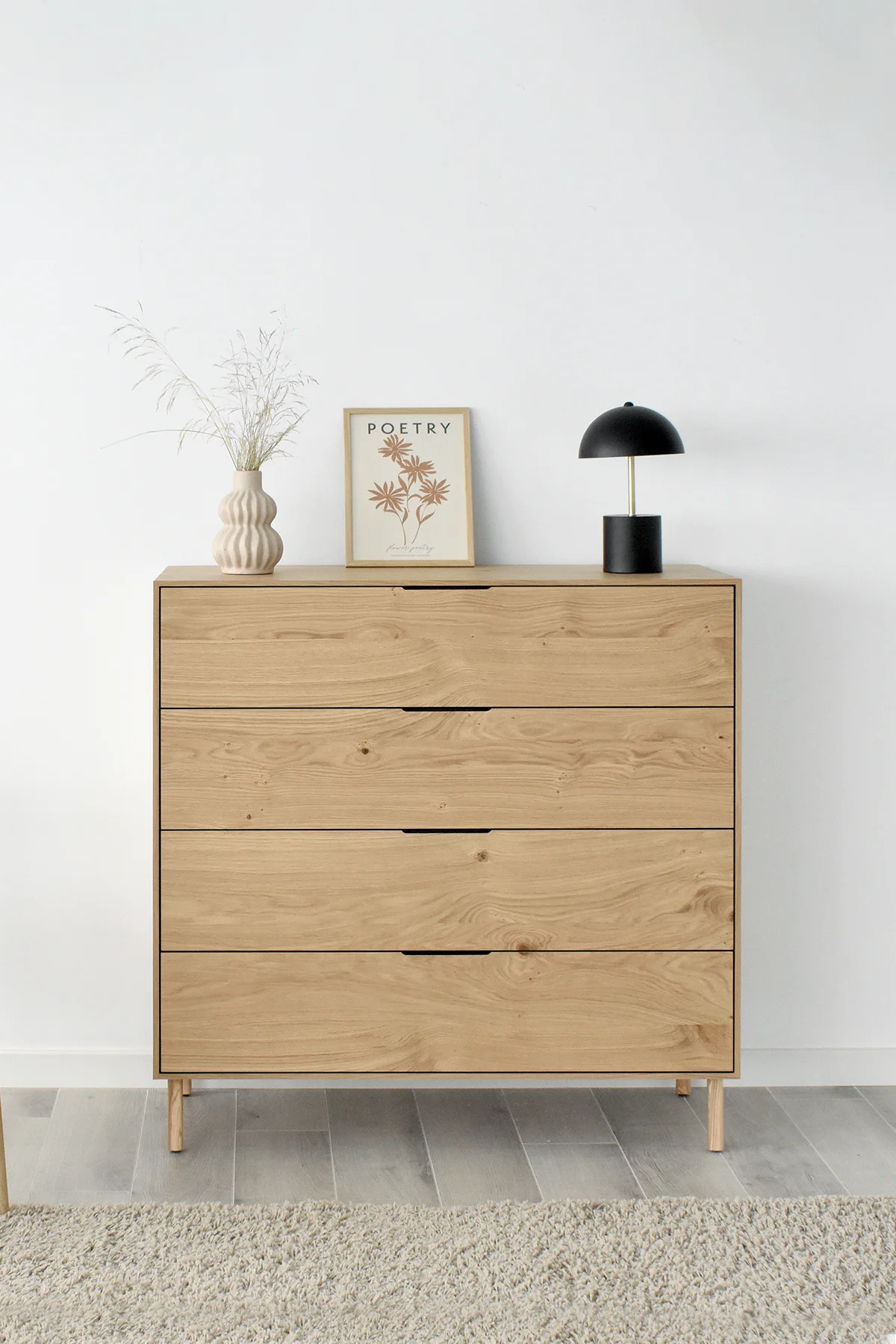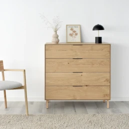 In Colonia we sense Nordic and simple shapes combing the naturalness of wood with the most avant-grade and practical design. Thin, soft profiles, fronts in an interior layout and beds without exposed legs to give the composition greater lightness. Collection composed of bedside tables, low & high chest of drawers, headboard and bed base. All leg models available.