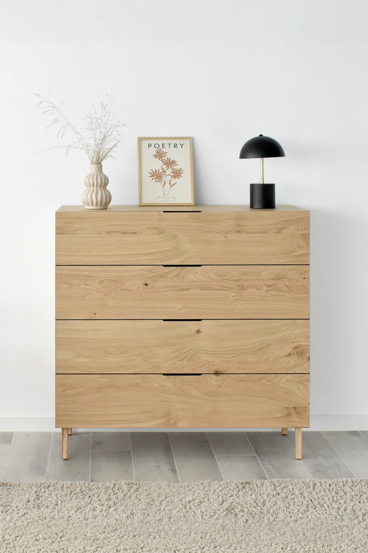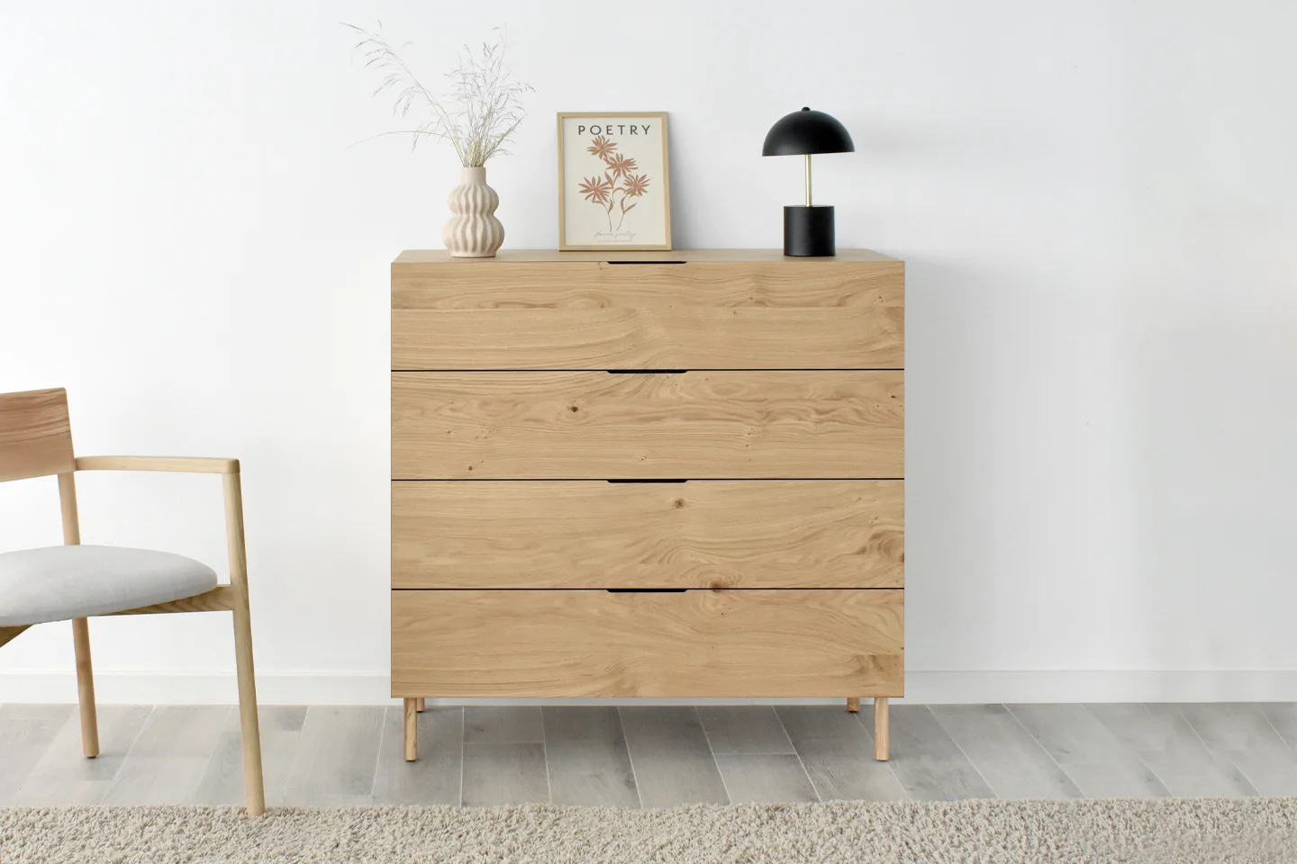 In this collection, the most versatile, we can choose between different types of drawer fronts and two models of headboard. In Nörsk, we sense the evolution in design with clear shapes that evoke a plesant temporality. It is the most versatile collection with Nordic and simple lines that combine the naturalness of wood with the most avant-garde and practical design. Collection composed of bedside tables with different types of fronts, low & high chests of drawers and two headboards.