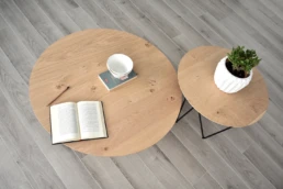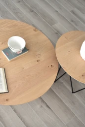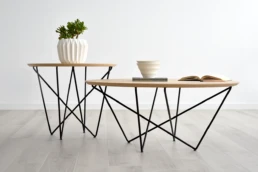 The organic shapes of our Geo model directly evoke nature, the basics, the essential, creating a warm and attractive atmosphere. The fusion of wood and metal in the right balance and naturalness, bring a timeless aura to the design. It follows in the wake of our Nordic designs by adopting metal as another material within nature. *Available in porcelain & Wood top.