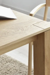 Goteborg is a sober and elegant design that shows the beauty of materials. A Nordic and contemporary table ideal for any place in the domestic landscape. Main features would be its solid construction, naturalness and visual lightness, giving great importance to the thickness of the legs which, together with the top-frame core, give the design visual strength, stability and robustness. The wood takes on maximum importance creating a timeless table where you can enjoy family gatherings, friends, meals and countless special moments.
