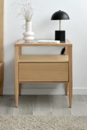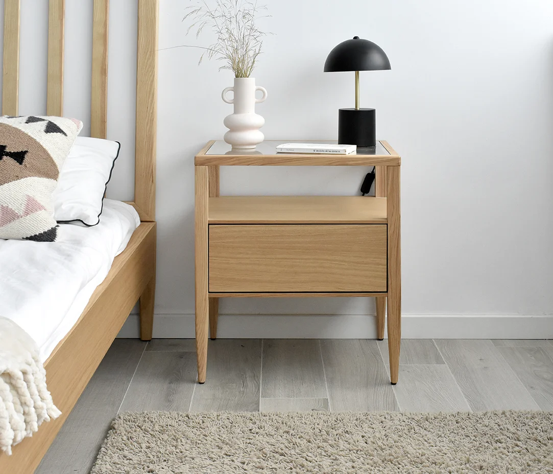 The lightness warmth of the tones in Natur collection evokes a pleasant sense of timelessness, making the perfect match Nordie lines and organic shapes. Let yourself be carried away by the most innovative and practical design in our collection, in which a pinch of distinction has been added without altering the peace and tranquility of the atmosphere. Collection composed of bedside tables, low & high chests of drawers, headboard and bed base.