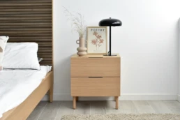 In this collection, the most versatile, we can choose between different types of drawer fronts and two models of headboard. In Nörsk, we sense the evolution in design with clear shapes that evoke a plesant temporality. It is the most versatile collection with Nordic and simple lines that combine the naturalness of wood with the most avant-garde and practical design. Collection composed of bedside tables with different types of fronts, low & high chests of drawers and two headboards.