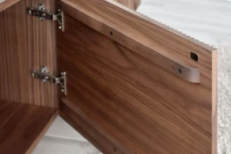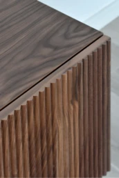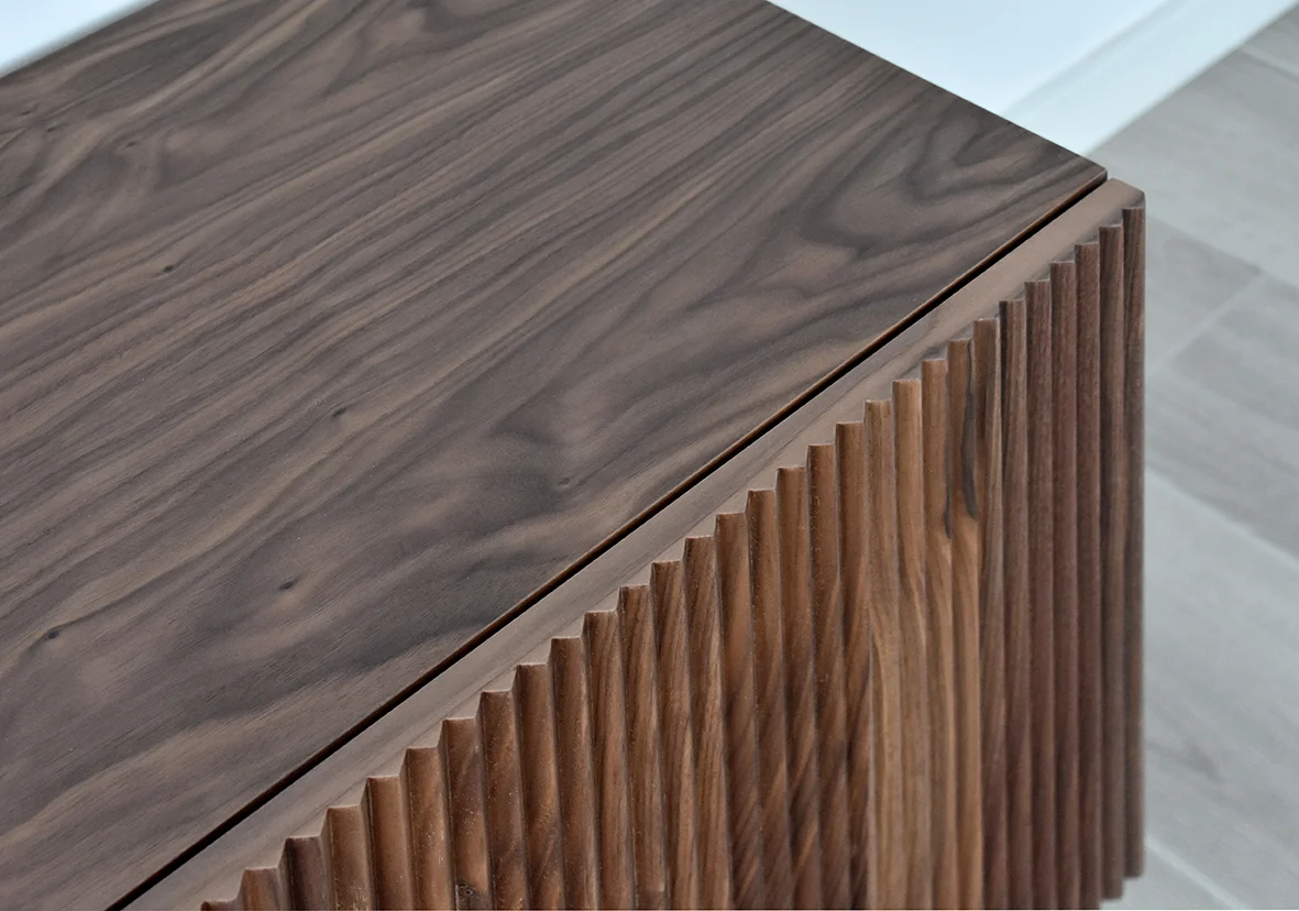 La calidez de las maderas nobles contrasta con las líneas claras y puras en Øvre, con inspiración nórdica e influencias niponas. Esta colección resultó un paso adelante dentro de la evolución de nuestros diseños. Artesanía, vanguardia y calidez para tu salón. Disponible en nogal, distintos robles y lacados, así como en todos nuestros modelos de pata. Opción tapa porcelánico.