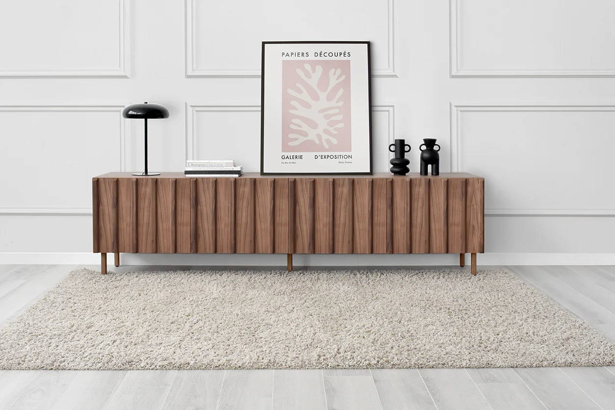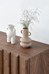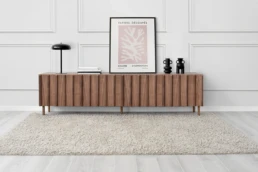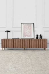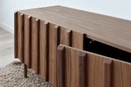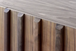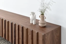 Straight lines and natural woods take centre stage in this collection to create a pleasing design with great visual strength. Clearly Nordic-inspired, it presents a play of vertical lines creating a classic aura with modern lines that bring warmth to home. Available in oak, walnut, lacquered finishes and with all our leg models. Option in porcelain top.