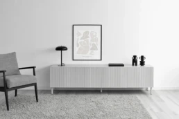 This Nordic-inspired collection combines straight lines with the natural beauty of oak wood, creating an elegant and harmonious corner in your living room. Every detail reflects the elegance and simplicity of Scandinavian design. Available in oak, walnut, lacquered finishes and with all our leg models. Option in porcelain top.