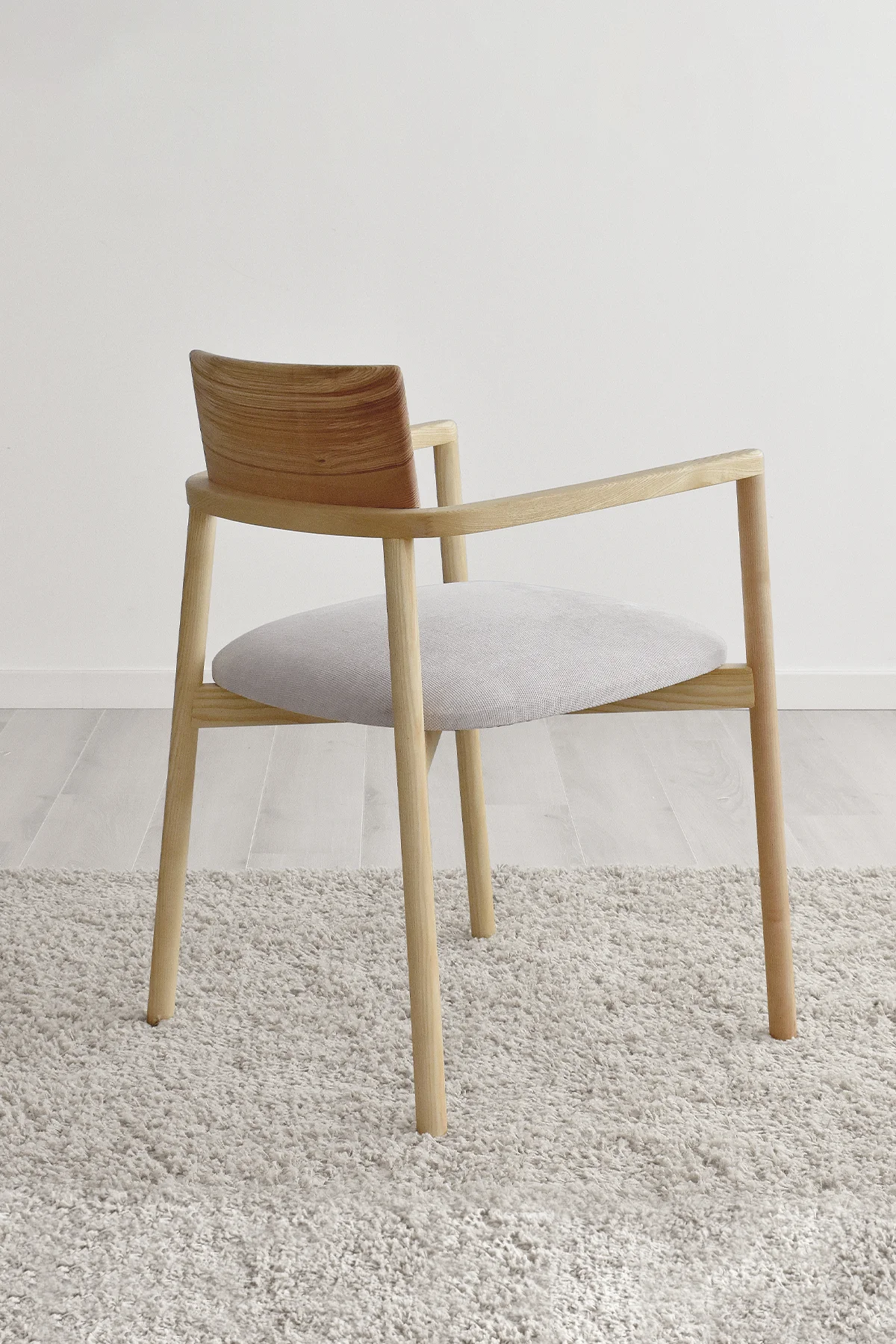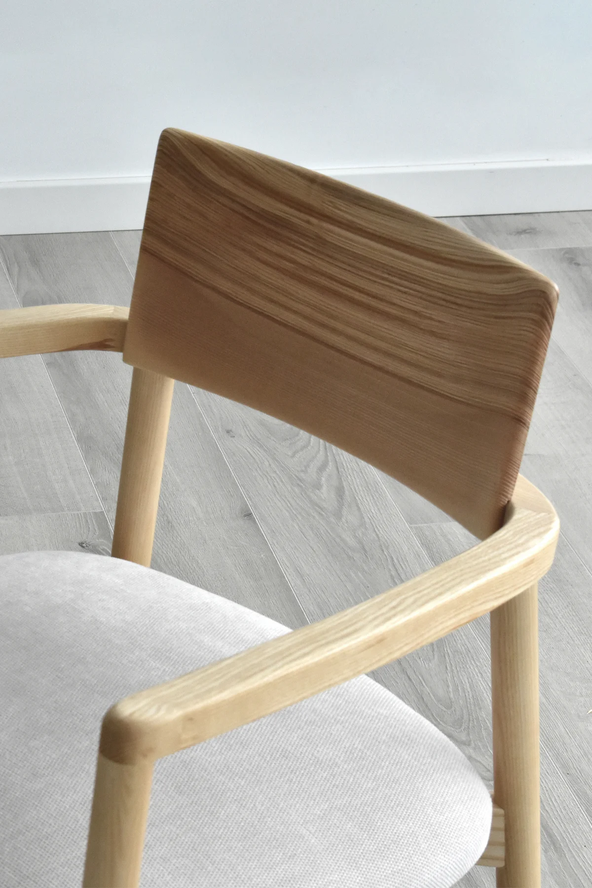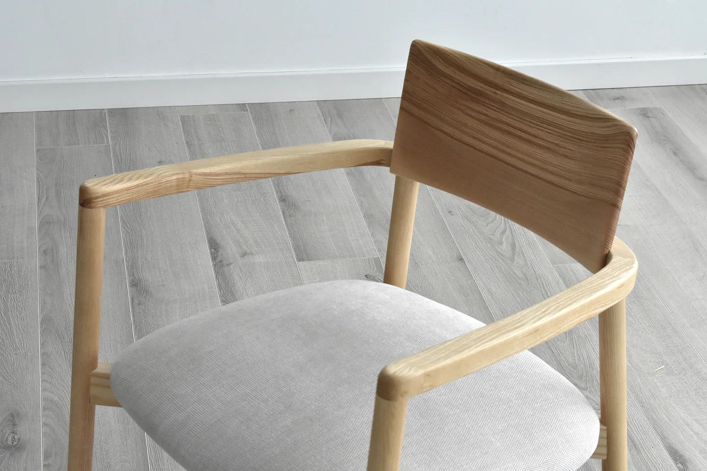 Our Lêvic chair is a piece that embodies the essence of Nordic design with its simple elegance and exceptional functionality. Made from Ash wood, this chair combines clean lines and soft curves to offer maximum comfort. The curved backrest and upholstered seat not only provide a modern and cozy aesthetic but also ideal ergonomic support for long hours of use. The design of the Lêvic chair highlights the natural beauty of the wood, maintaining a minimalist aesthetic that fits any space. Without a doubt, it is perfect for those looking to add a touch of sophistication and warmth to their environment.