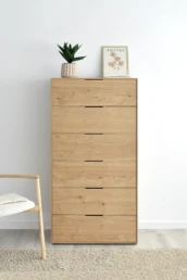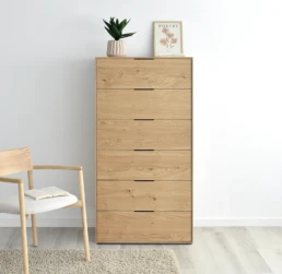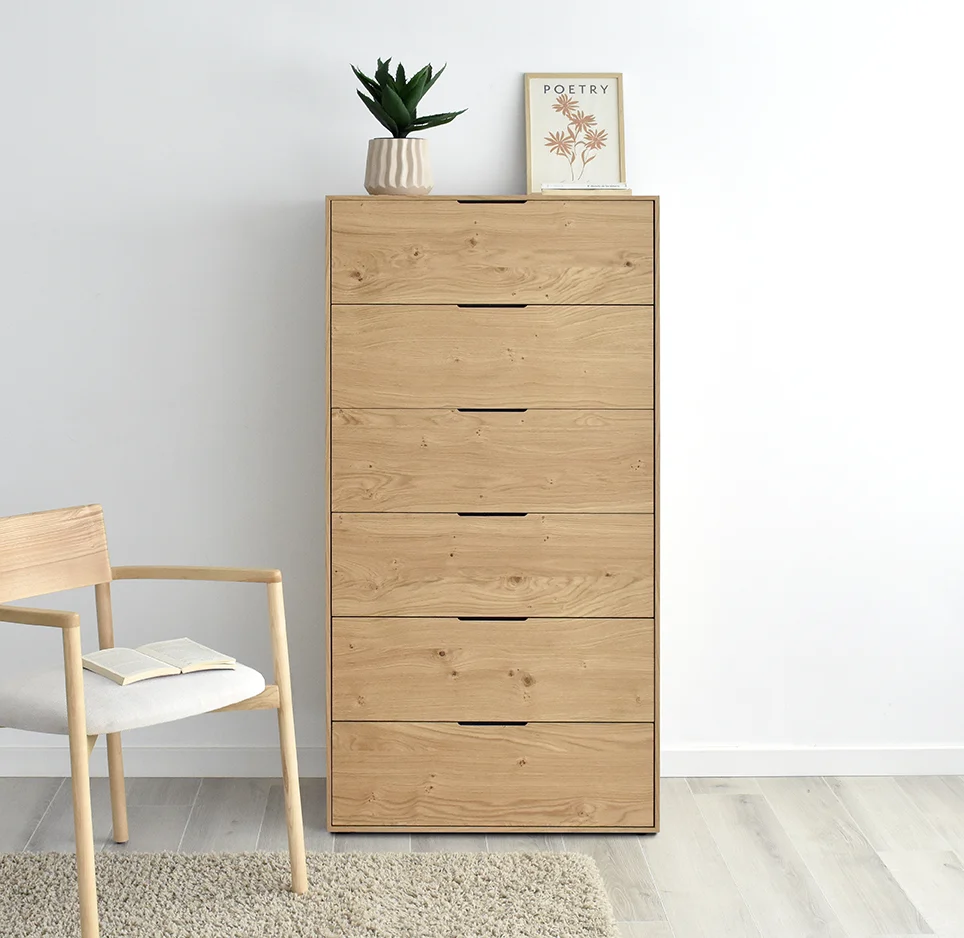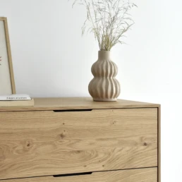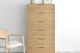 In Colonia we sense Nordic and simple shapes combing the naturalness of wood with the most avant-grade and practical design. Thin, soft profiles, fronts in an interior layout and beds without exposed legs to give the composition greater lightness. Collection composed of bedside tables, low & high chest of drawers, headboard and bed base. All leg models available.
