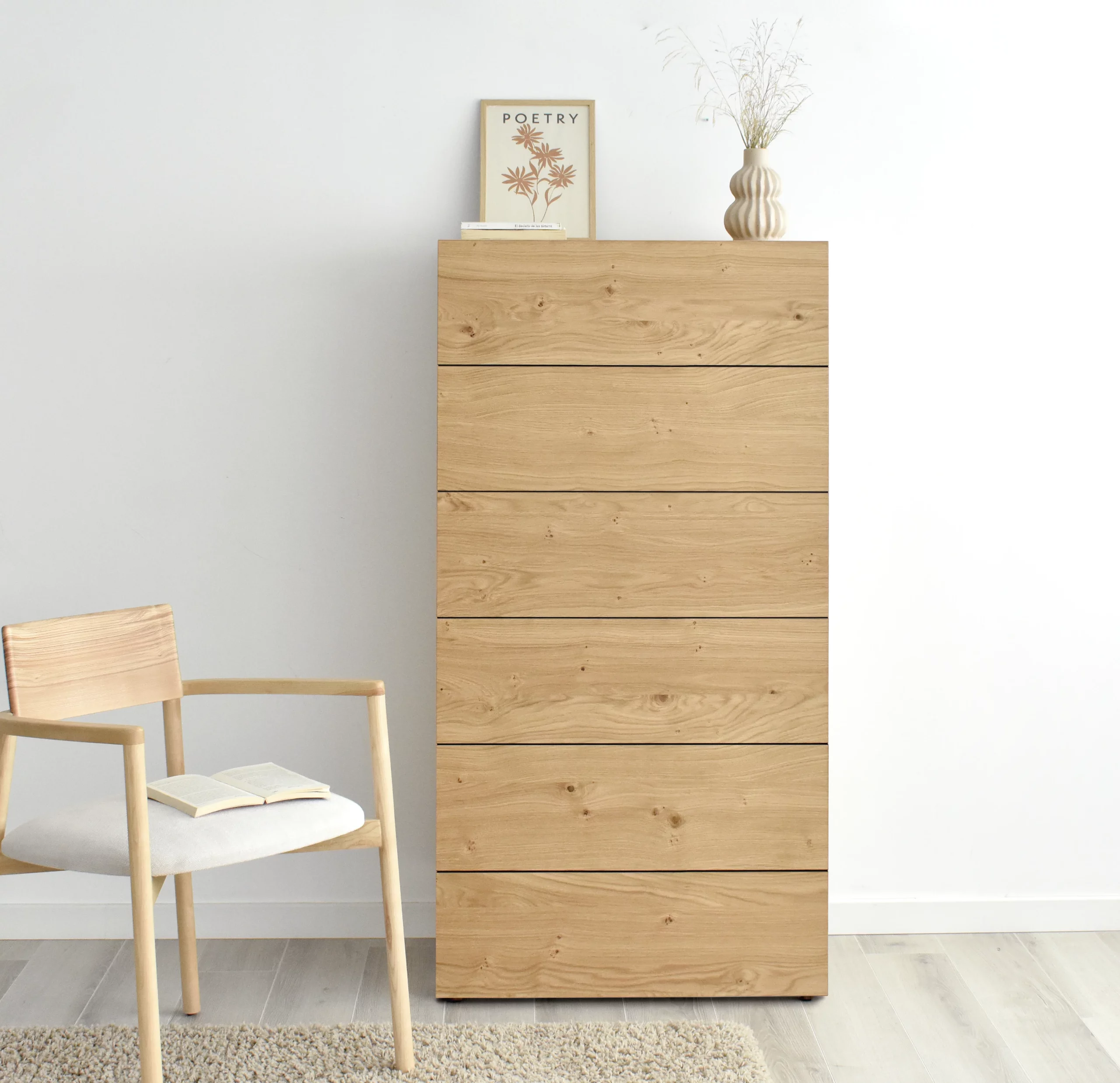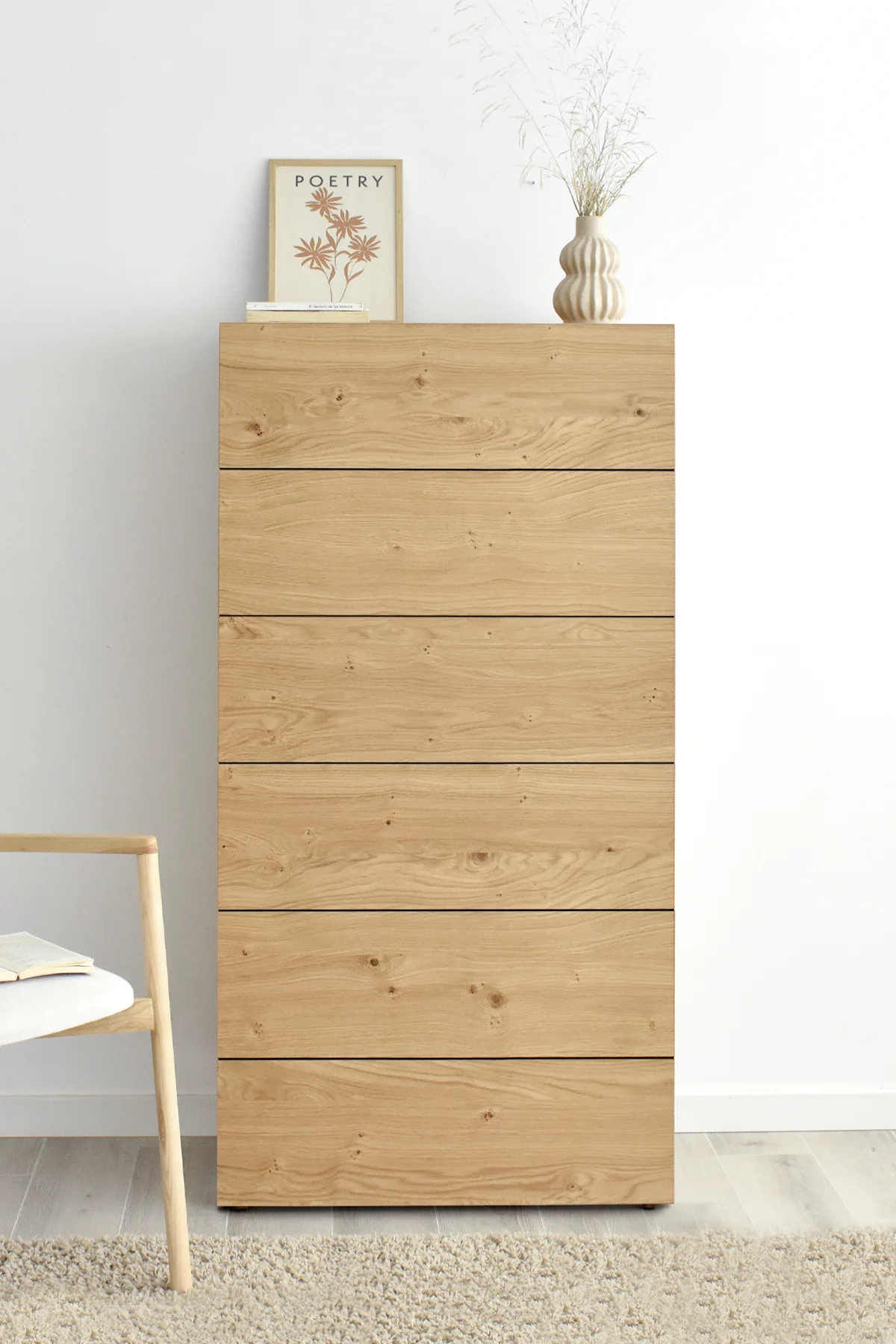 In this collection, the most versatile, we can choose between different types of drawer fronts and two models of headboard. In Nörsk, we sense the evolution in design with clear shapes that evoke a plesant temporality. It is the most versatile collection with Nordic and simple lines that combine the naturalness of wood with the most avant-garde and practical design. Collection composed of bedside tables with different types of fronts, low & high chests of drawers and two headboards.